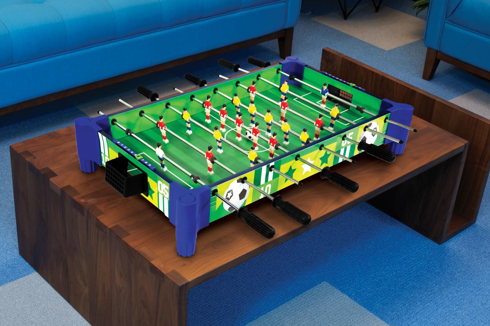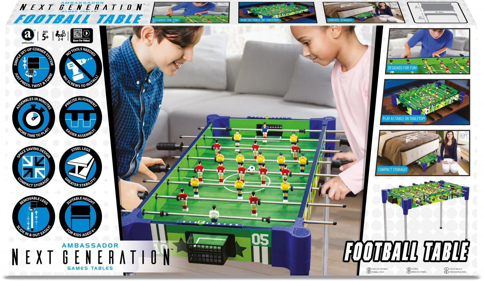 Ο σχεδιασμός του επιτρέπει τη συναρμολόγηση μέσα σε λίγα λεπτά αντί για ώρες, χωρίς την ανάγκη εργαλείων, επιτρέπει τόσο τον επιτραπέζιο όσο και τον επιδαπέδιο τρόπο παιχνιδιού, είναι συμπαγής για αποθήκευση και είναι πιο σταθερός και ανθεκτικός από άλλα τραπέζια παιχνιδιών! Αυτό το τραπέζι ποδοσφαίρου μήκους 32«» διαθέτει ομαλή επιφάνεια παιχνιδιού γρήγορης δράσης, τρισδιάστατους παίκτες, υπερυψωμένη επιφάνεια χωρίς ολίσθηση, πόδια πρόσφυσης, συνδεόμενα δίχτυα και μπάρες σκοραρίσματος και δροσερά γραφικά ξύλινα πάνελ. Γρήγορο και διασκεδαστικό τραπέζι που έχει το ιδανικό ύψος για τα παιδιά.
