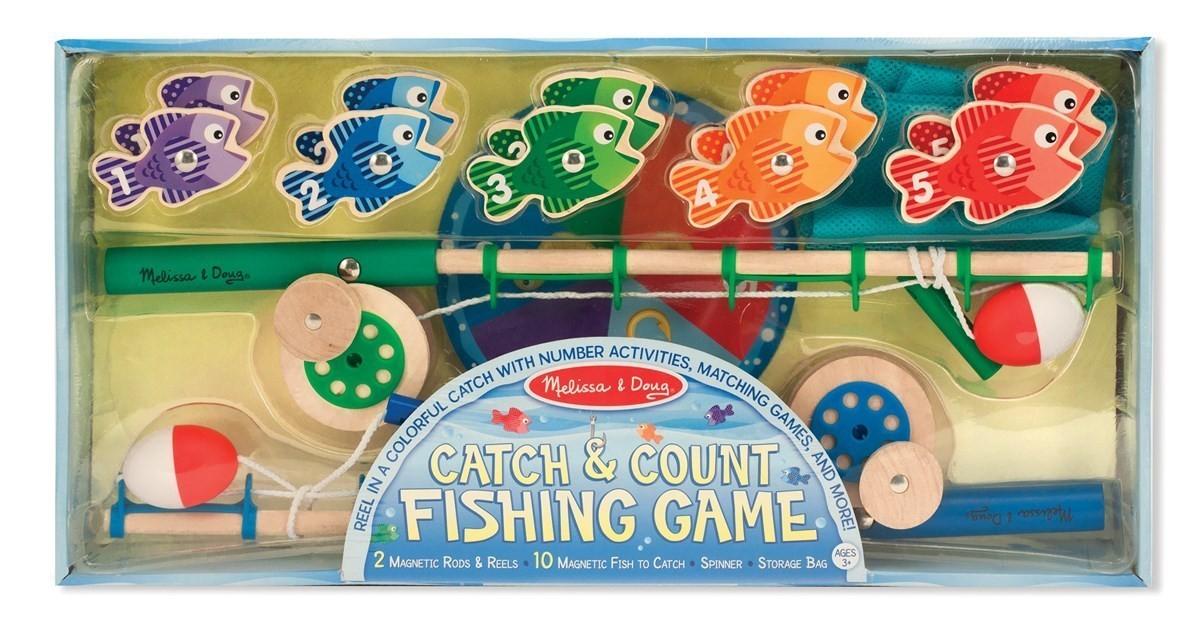 Ξύλινο μαγνητικό παιχνίδι ψαρέματος! Πιάσε τα ψαράκια με τα 2 καλάμια. Ιδανικό δώρο για παιδιά μεταξύ 3 και 5 ετών. Ενισχύει τη λεπτή κινητικότητα και τον συντονισμό ματιών-χεριών.