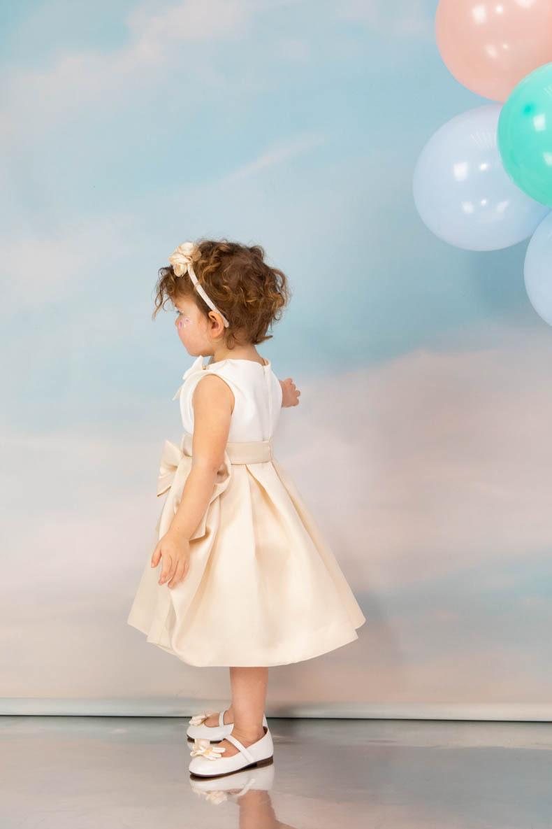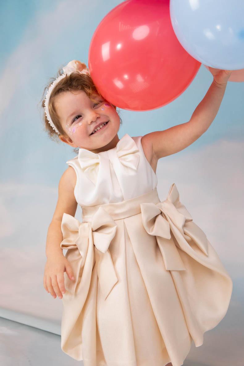 Exclusive εκρού nude φόρεμα σε girly στυλ που το ύφασμα δημιουργεί φιόγκους στην φούστα και το μπούστο. Αξεσουάρ στέκα με πέρλες και εκρού nude λουλούδια. Σύνθεση υφασμάτων: Σατέν ισπανικής προέλευσης, Tulle Ισπανίας, 100% Cotton. Ελληνικής ραφής.