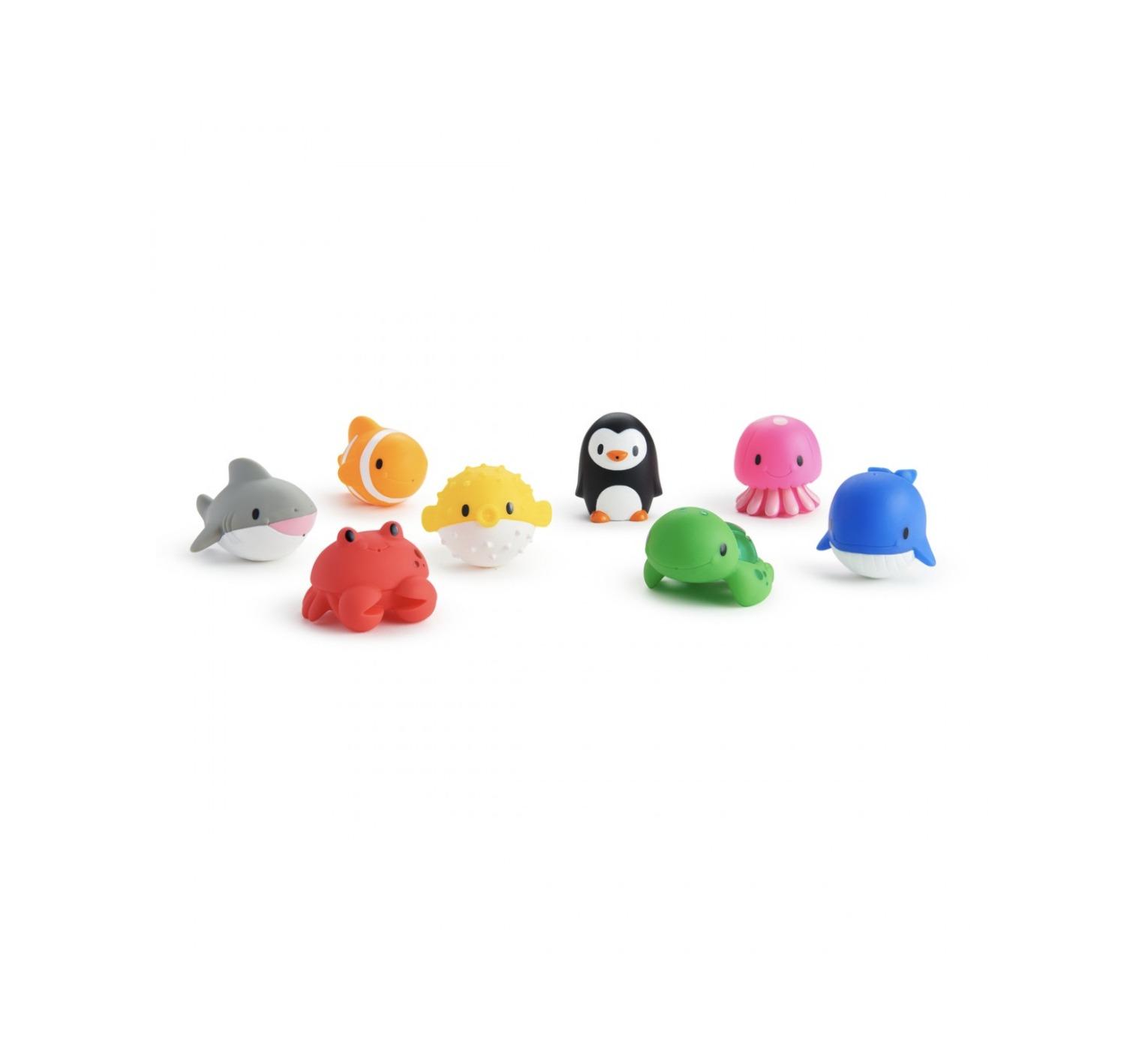 Αυτό το σετ οκτώ χρωματιστών θαλάσσιων πλασμάτων θα αφήσει σίγουρα την ανία στη στεριά! Με τα φιλαράκια Ocean™ το μικρό σας μπορεί να δημιουργήσει ιστορίες στο νερό, μαθαίνοντας παράλληλα τα ονόματα των ζώων, όπως ο πιγκουίνος, ο ιππόκαμπος, ο αστερίας κτλ. Τα παιχνίδια μπάνιου σε έντονα χρώματα επιπλέουν, πιτσιλίζουν νερό και έχουν κατάλληλο μέγεθος για τα χεράκια του μωρού σας, ώστε να μπορεί να τα πιάνει και να τα πιέζει. Σε διάφανη συσκευασία για εύκολη αποθήκευση ή και για δώρο! Δώστε και τα οκτώ παιχνίδια μαζί για μια μοναδική περιπέτεια ή εκπλήξτε τον μικρό δύτη σας με ένα καινούργιο φιλαράκι κάθε μέρα. Το μόνο σίγουρο είναι ότι η διασκέδαση στο μπάνιο θα είναι ατελείωτη!