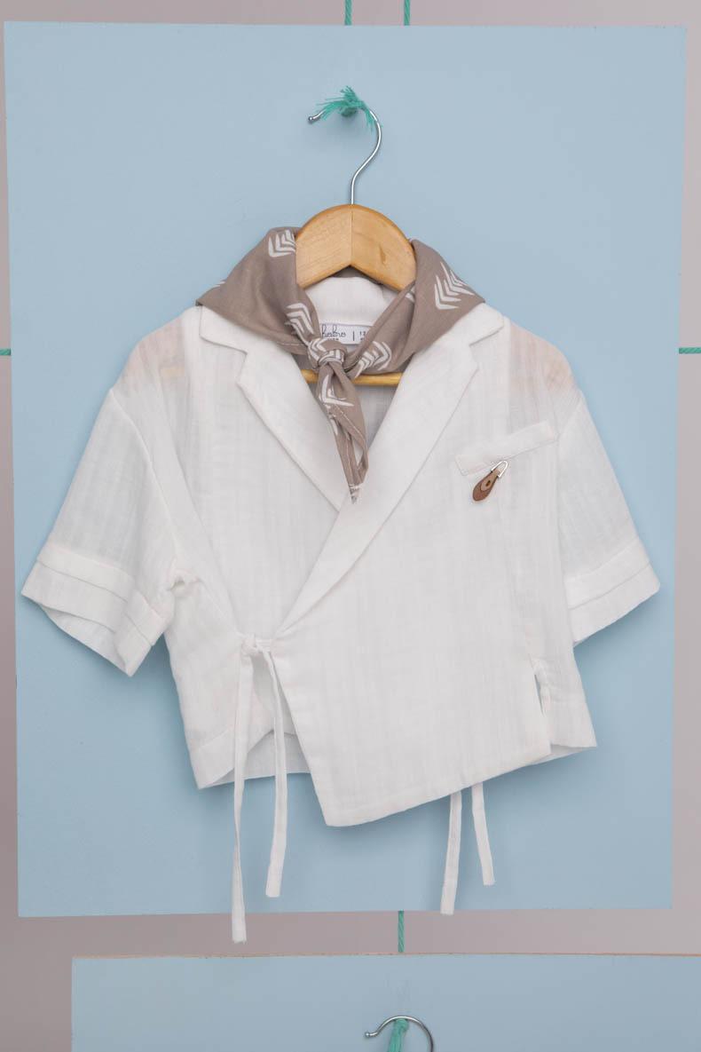 O Periklis είναι ο απόλυτος συνδυασμός σε μπεζ-μελί και εκρού απόχρωση. Πουκαμίσα κοντομάνικη soft cotton 100% εκρού με δεσίματα και δερμάτινα αξεσουάρ. Παντελόνι δίχρωμο που αποτελείται από μπεζ alternative καπαρντίνα και μελί linetta 100% με δερμάτινο αξεσουάρ. Φουλάρι τρίγωνο από μπεζ printed σχέδιο 100% cotton. Kαπέλο καφέ σκούρο με κορδόνι εκρού. Ζώνη: Ιδιαίτερη πλεξούδα σε εκρού χρώμα.