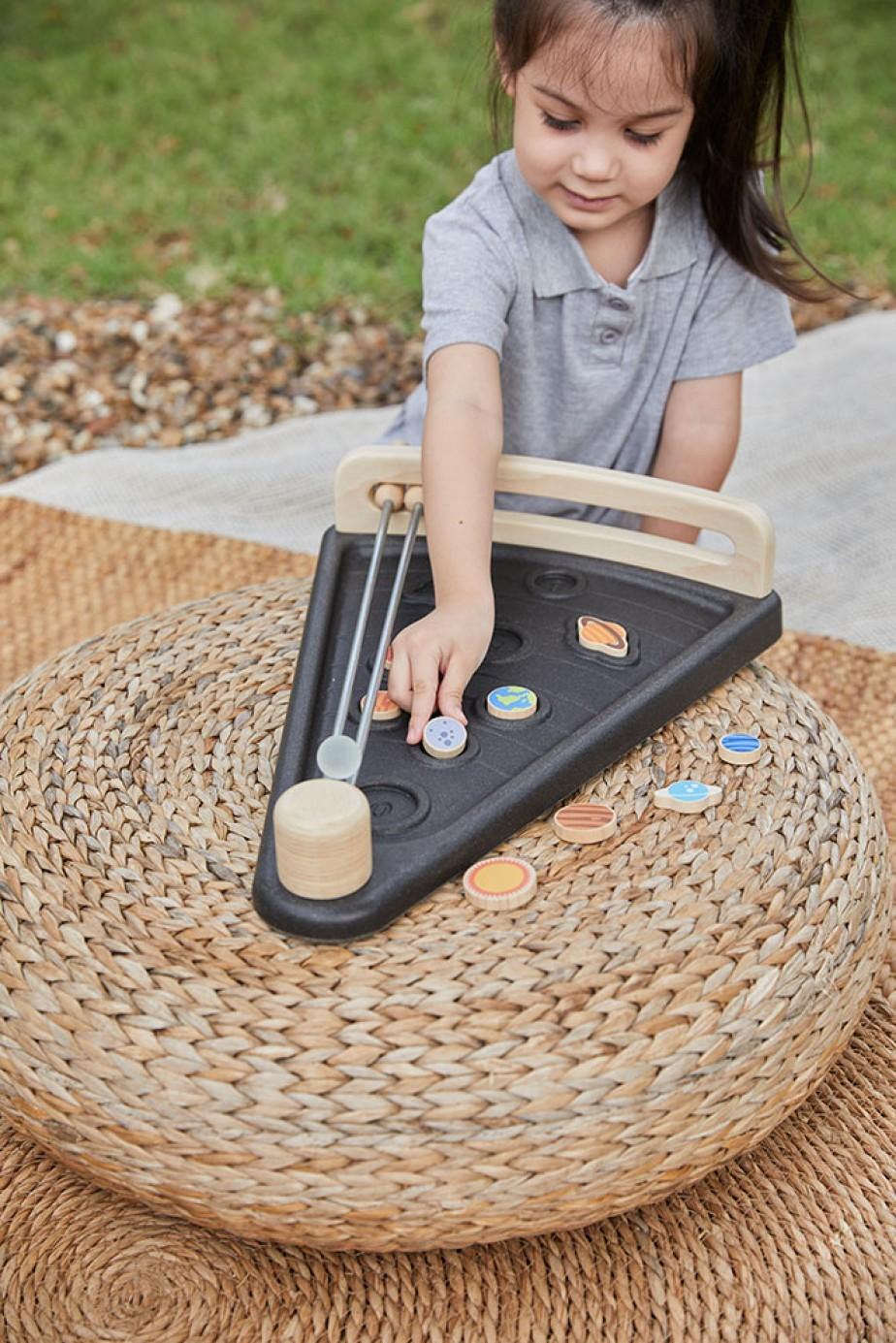 Μάθετε για τη βαρύτητα με το παιχνίδι της εταιρείας Plan Toys. Σκοπός του παιχνιδιού είναι ο παίκτης που ελέγχει τη μπίλια που βρίσκεται κατά μήκος των χαλύβδινων ράβδων, να αφήσει τη μπίλια, ανοίγοντας και κλείνοντας τις ράβδους, να πέσει στο σωστό σημείο. Ακόμη, η ταχύτητα τις μπίλιας μπορεί να ρυθμιστεί ανάλογα με το πλάτος των σιδηροτροχιών. Τα παιδιά μπορούν να μάθουν τον προγραμματισμό, την αιτία και το αποτέλεσμα και τις δεξιότητες επίλυσης προβλημάτων. Μπορείτε επίσης να χρησιμοποιήσετε τον πίνακα ως ταιριαστό παιχνίδι παζλ τοποθετώντας τα διαφορετικά κομμάτια πλανήτη στα σωστά σημεία. Κάθε κομμάτι έχει έναν αριθμό στην άλλη πλευρά ως σημείο. Αυτό το σετ περιλαμβάνει μια μπίλια, και μια σανίδα ηλιακού συστήματος που αποτελείται από τον Ήλιο και ό,τι συνδέεται με αυτόν από τη βαρύτητα – τους πλανήτες Ερμή, Αφροδίτη, Γη, Άρη, Δία, Κρόνο, Ουρανό και Ποσειδώνα. Κατασκευάζεται βιώσιμα στην Ταϊλάνδη χρησιμοποιώντας καουτσούκ χωρίς χημικά, κόλλα χωρίς φορμαλδεΰδη, οργανικές χρωστικές ουσίες και βαφές με βάση το νερό. Κατάλληλο από 3 ετών και άνω. Διαστάσεις συσκευασίας: 57 x 7,5 x 38 εκ.