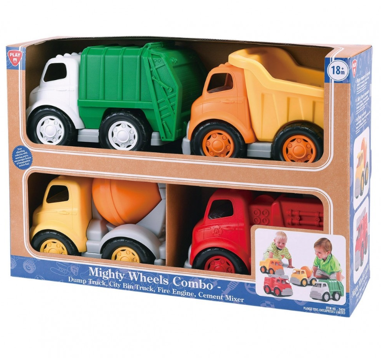 Περιλαμβάνει ένα απορριμματοφόρο, ένα ανατρεπόμενο φορτηγό, μια μπετονιέρα και ένα πυροσβεστικό όχημα.