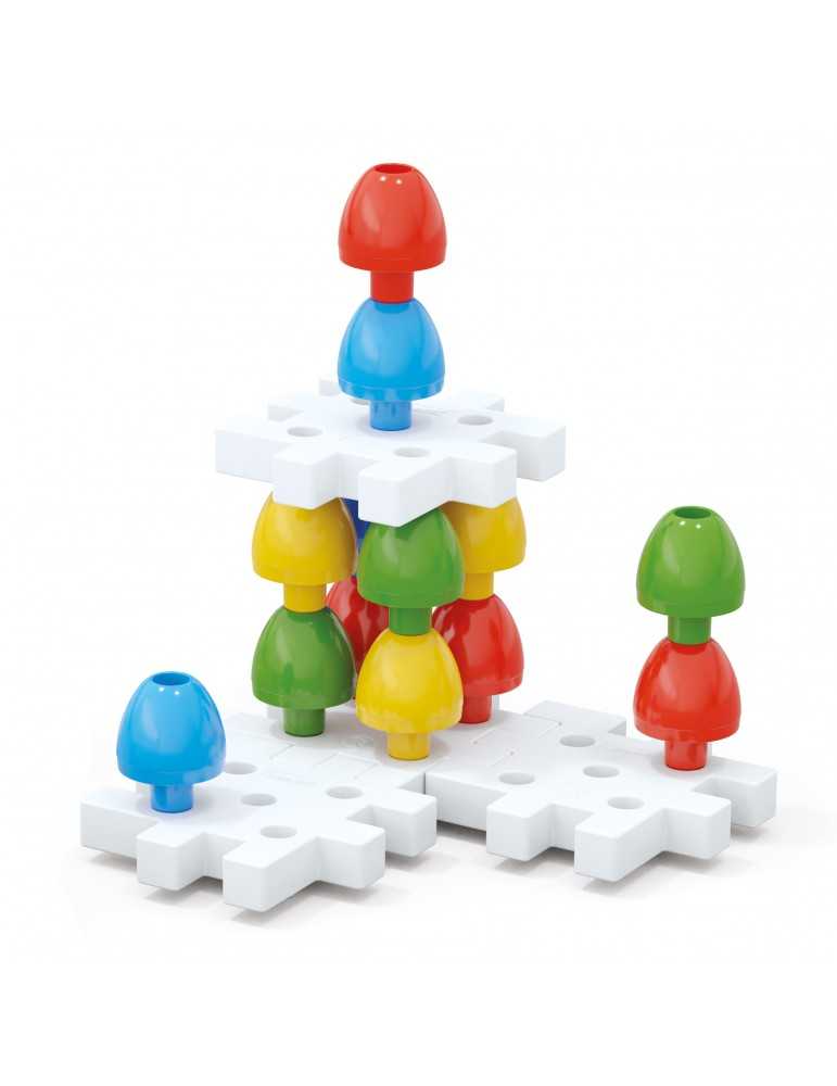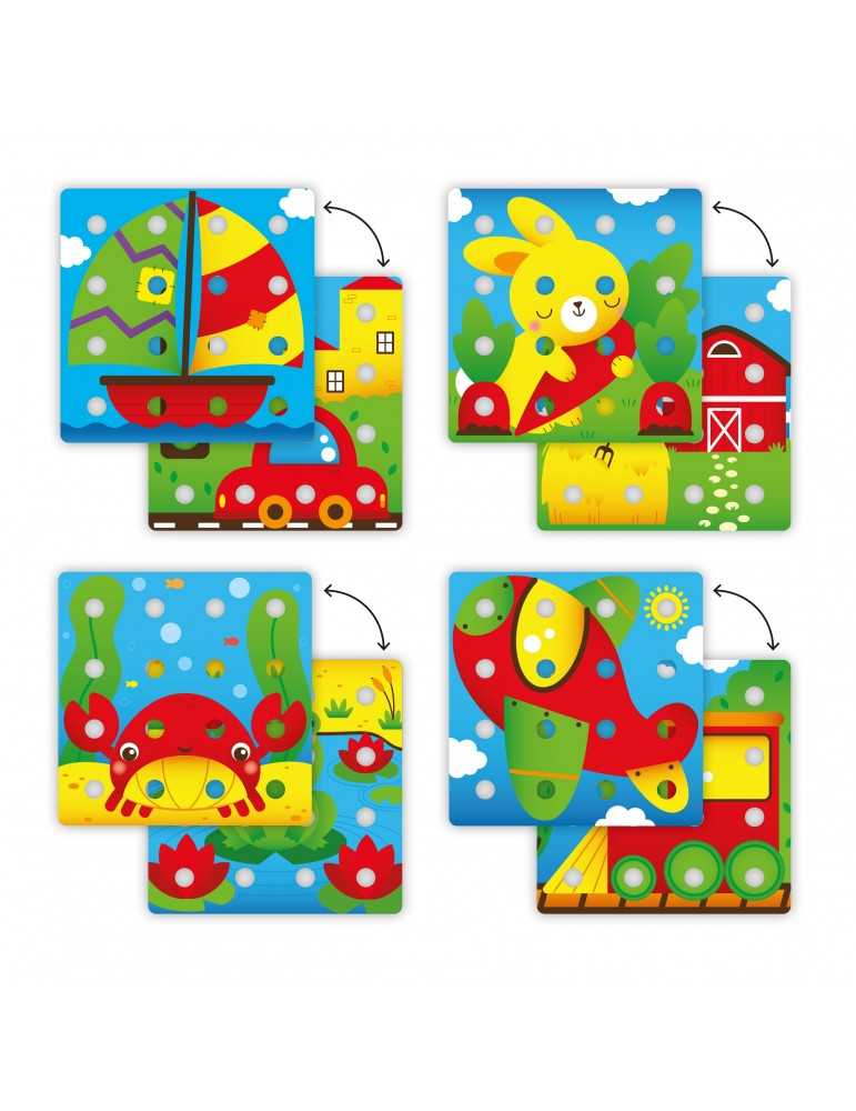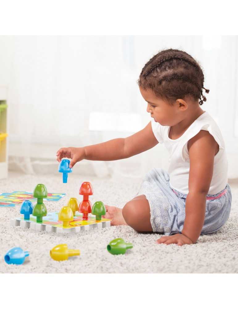 Παιχνίδι κατασκευής για μικρές ηλικίες: Το παιδί βάζει τα μεγάλα μαλακά κουμπιά πάνω στη βάση, σύμφωνα με την εικόνα που βλέπει από κάτω. Αρχίζει σιγά-σιγά να δημιουργεί μια εικόνα χωρίς δυσκολία. Τα κουμπιά είναι πολύ μεγάλα (? 3,2εκ) και ακίνδυνα για τα μικρά παιδιά