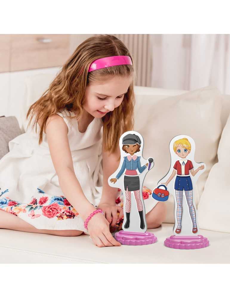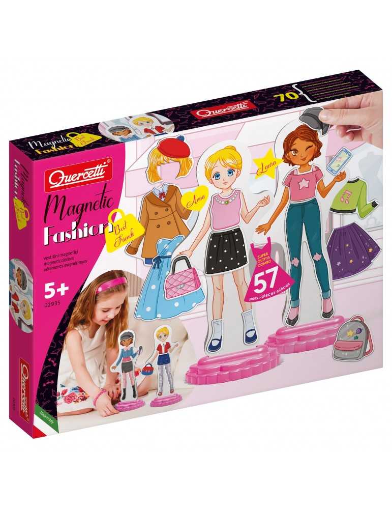 Quercetti Magnetic Fashion Best Friends.Ενισχύει τη Φαντασία και τη Δημιουργικότητα.Με το Magnetic Fashion, θα διασκεδάσετε αφάνταστα στο να ντύνετε τις δύο καλύτερες φίλες με αμέτρητους διαφορετικούς τρόπους: ταιριάξτε την ιδανική εμφάνιση για την κάθε μια σύμφωνα με την προσωπικότητά της. Νέες εμφανίσεις και πολλά νέα μαγνητικά φορέματα που μπορούν να συνδυαστούν για να δημιουργήσουν το τέλειο outfit. Παίξτε με την ʼννα και τη Λόρα, τις κομμένες κούκλες για να δημιουργήσετε αμέτρητες νέες ιστορίες και να διασκεδάσετε. Τα ρούχα μπορούν να χωριστούν για να ταιριάξουν με ακόμη περισσότερους συνδυασμούς χρησιμοποιώντας τα 57 μαγνητικά κομμάτια της συσκευασίας. Ως έξτρα μπόνους, τα ρούχα ταιριάζουν σε όλες τις κούκλες της συλλογής Magnetic Fashion! Παίξτε με τη Maggie για να συνδυάσετε όλα τα στυλ για να δημιουργήσετε νέες διαθέσεις!ΠΕΡΙΕΧΟΜΕΝΟ 2 μαγνητικές κούκλες.2 βάσεις.57 μαγνητικά κομμάτια ρούχων.