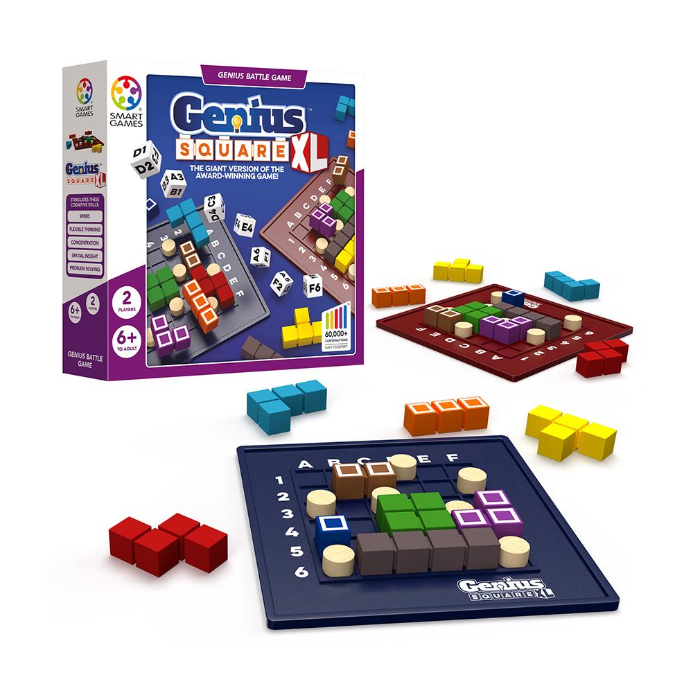 Χρησιμοποιήστε την… «τετράγωνη» λογική σας και λύστε ένα από τα 62.208 παζλ του Genius Square με τα 5 διαφορετικά επίπεδα δυσκολίας. Ρίξτε τα ζάρια, τοποθετήστε τα 7 εμπόδια κατάλληλα στο πλέγμα, βάλτε όσο πιο γρήγορα μπορείτε τα 9 χρωματιστά σχήματα και βρείτε πρώτοι τη λύση του παζλ! Μπορεί κάποιες φορές να φαίνεται ότι δεν υπάρχει λύση, αλλά, να ξέρετε, υπάρχει ΠΑΝΤΑ τουλάχιστον μία! Μπορείτε να τη βρείτε; Παίξτε με έναν αντίπαλο ή αναμετρηθείτε με τον χρόνο! Ένα παιχνίδι γρήγορης σκέψης, αντίληψης χώρου και παρατηρητικότητας για μικρούς και μεγάλους, που αναπτύσσει την συγκέντρωση, τη δυνατότητα επίλυσης προβλημάτων και τον ευέλικτο τρόπο σκέψης. Κατάλληλο από 6 ετών και άνω.