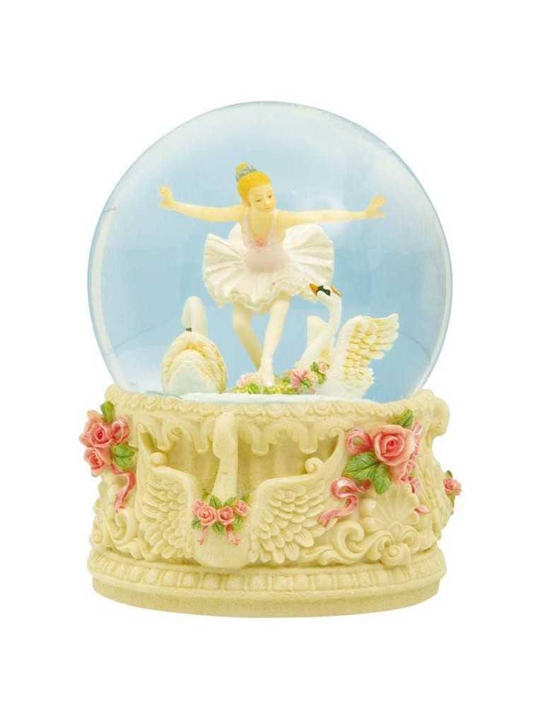 Xιονόμπαλα λίμνη των κύκνων, με μπαλαρινα και δύο κύκνους. Εχει ανάγλυφη βάση με κύκνους και λουλούδια. Φτιαγμένη από ρητίνη(επεξεργασμένη πορσελάνη).