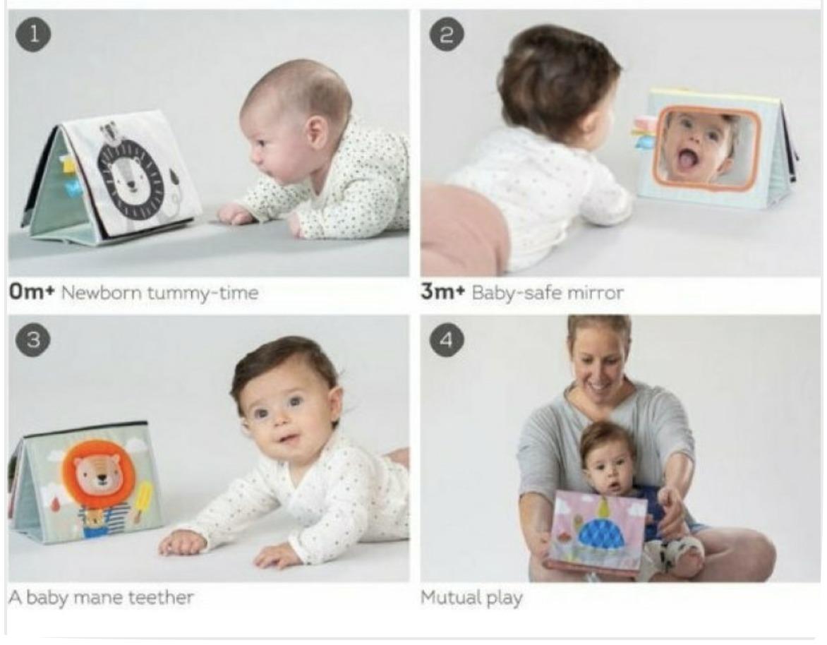 Το Tummy Time book είναι ένα μαλακό βρεφικό βιβλίο, με δύο πλευρές για να καλύπτει δύο αναπτυξιακά στάδια του μωρού, με τσαλακωτό γέμισμα για απόλυτη αίσθηση.
