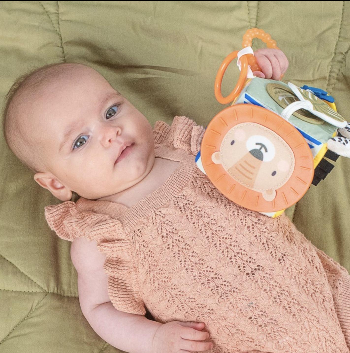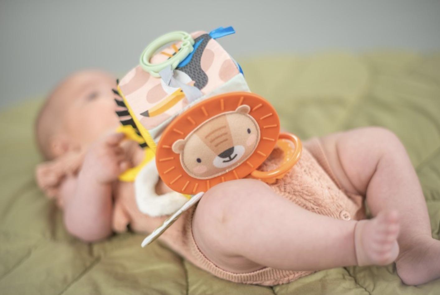 Διαφορετικές υφές, τρισδιάστατα παιχνίδια δραστηριοτήτων, συμπεριλαμβανομένου ενός μασητικού και μιας τσέπης παιχνιδιού.