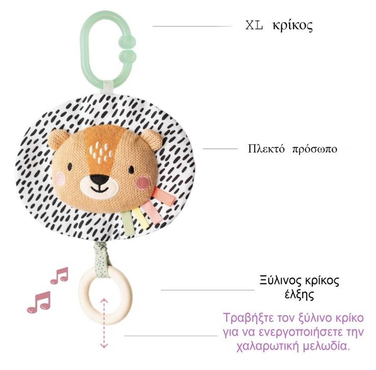 Διαφορετικές υφές, τρισδιάστατα παιχνίδια δραστηριοτήτων, συμπεριλαμβανομένου ενός μασητικού και μιας τσέπης παιχνιδιού.