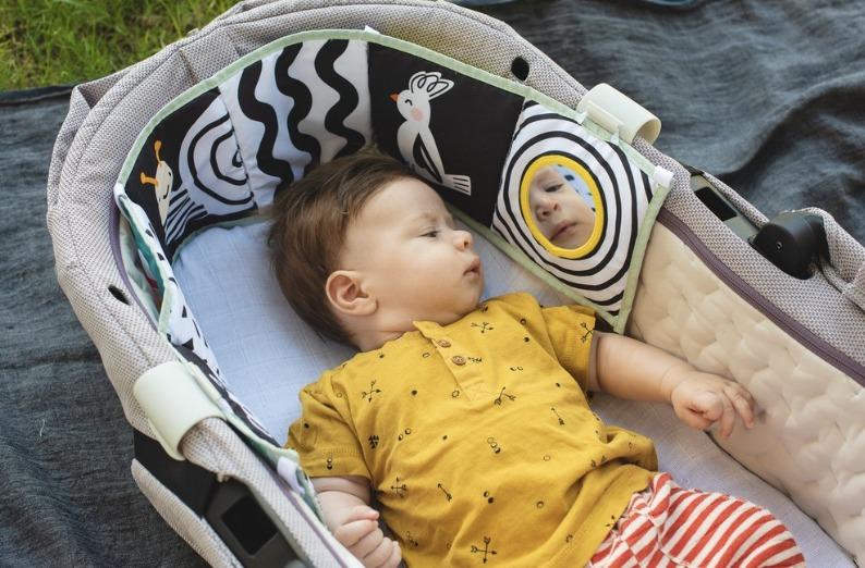 Χρώματα υψηλής αντίθεσης , καθρέφτης ασφαλείας για μωρά και εικόνα έντονης εστίασης για την ανάπτυξη των αισθήσεων του μωρού και της συναισθηματικής του νοημοσύνης.