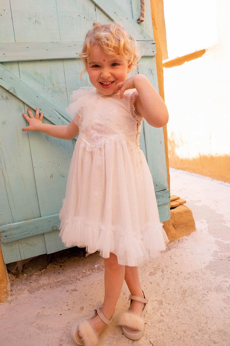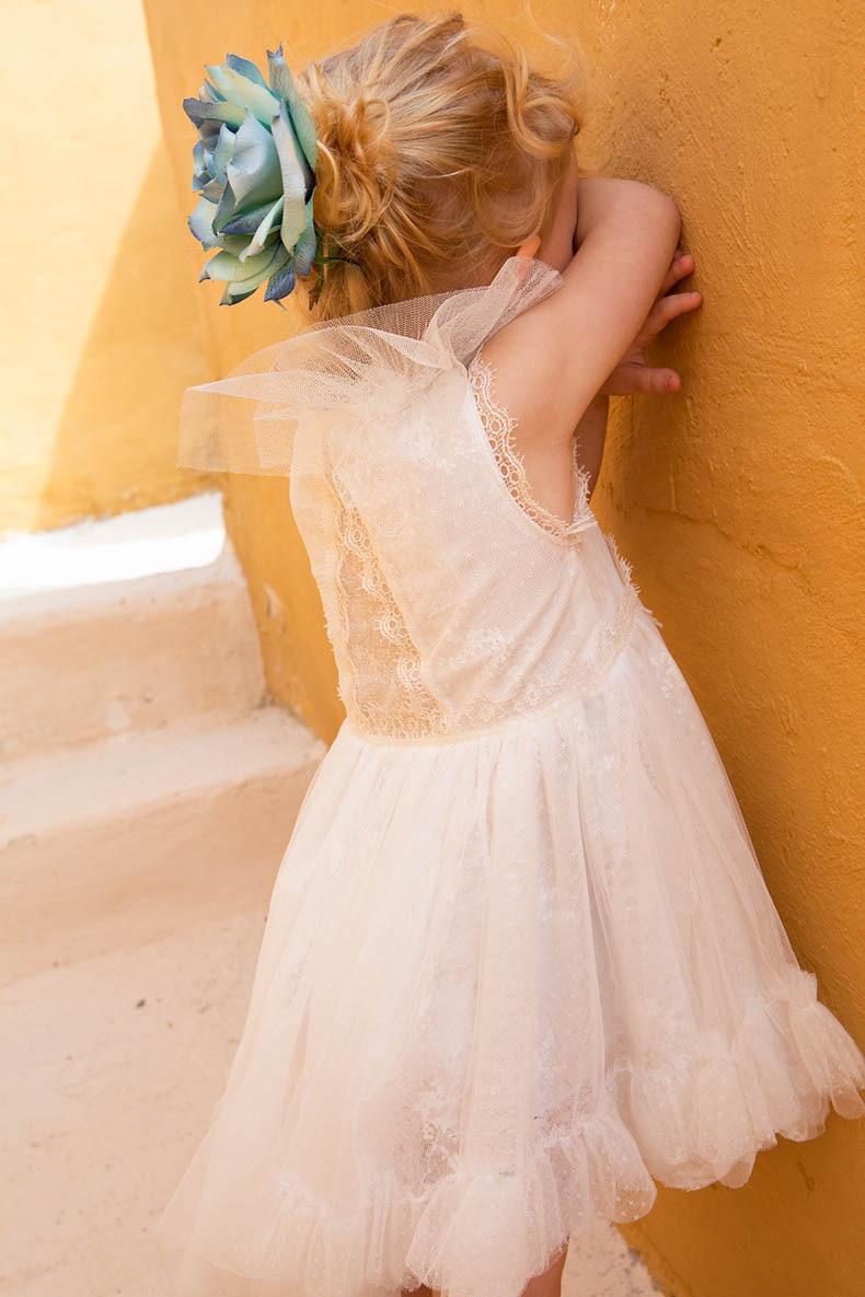 Η Thomais ειναι ενα εκρου ασσυμετρο φορεμα.Η ανεπαναληπτη μεση και πλατη με τις διαφανειες απο δαντελα αλλα και τα πλουσια βολαν του στο τελειωμα του ειναι μαγικα. τα τουλια και οι δαντελες ειναι εξαιρετικης γαλλικης ποιοτητας. περιλαμβανει στεκα για το κεφαλι με dusty green λουλουδια.