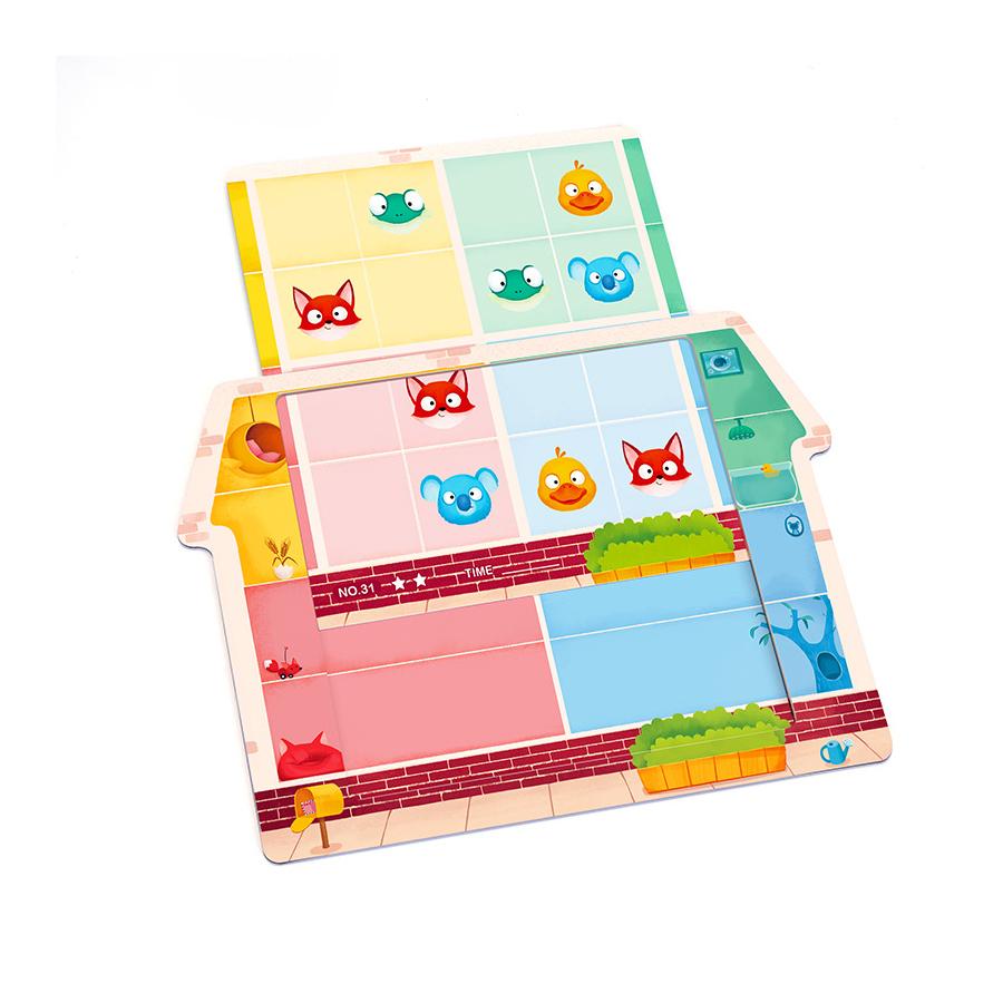 Τέσσερα γλυκά ζωάκια ζουν σε ένα διαμέρισμα στο κτίριο ΤΟΙ. Τους αρέσει να μένουν 3 ή 4 μαζί! Ας βρούμε ποιο ζωάκι λείπει από κάθε δωμάτιο, ο Κεν το κοάλα, ο Φρέντι η μικρή αλεπού, η Φαίη το βατραχάκι ή ο Ντέιν η πάπια; Μπορείς να τους βοηθήσεις να βρεθούν μαζί; Το πολύ δημοφιλές παιχνίδι παζλ Sudoku όπου ο παίκτης πρέπει να εισάγει αριθμούς στα κενά κουτάκια, σύμφωνα με τους αριθμούς που έχει το κάθε ταμπλό και πρέπει να διασφαλίσει ότι σε όλες τις οριζόντιες και κάθετες στήλες, κάθε αριθμός υπάρχει μόνο 1 φορά. Στο συγκεκριμένο επιτραπέζιο, θα βρείτε το κλασσικό και ακανόνιστο Sudoku. Yπάρχουν 3 επίπεδα δυσκολίας και περιλαμβάνονται αυτοκόλλητα επιβράβευσης.