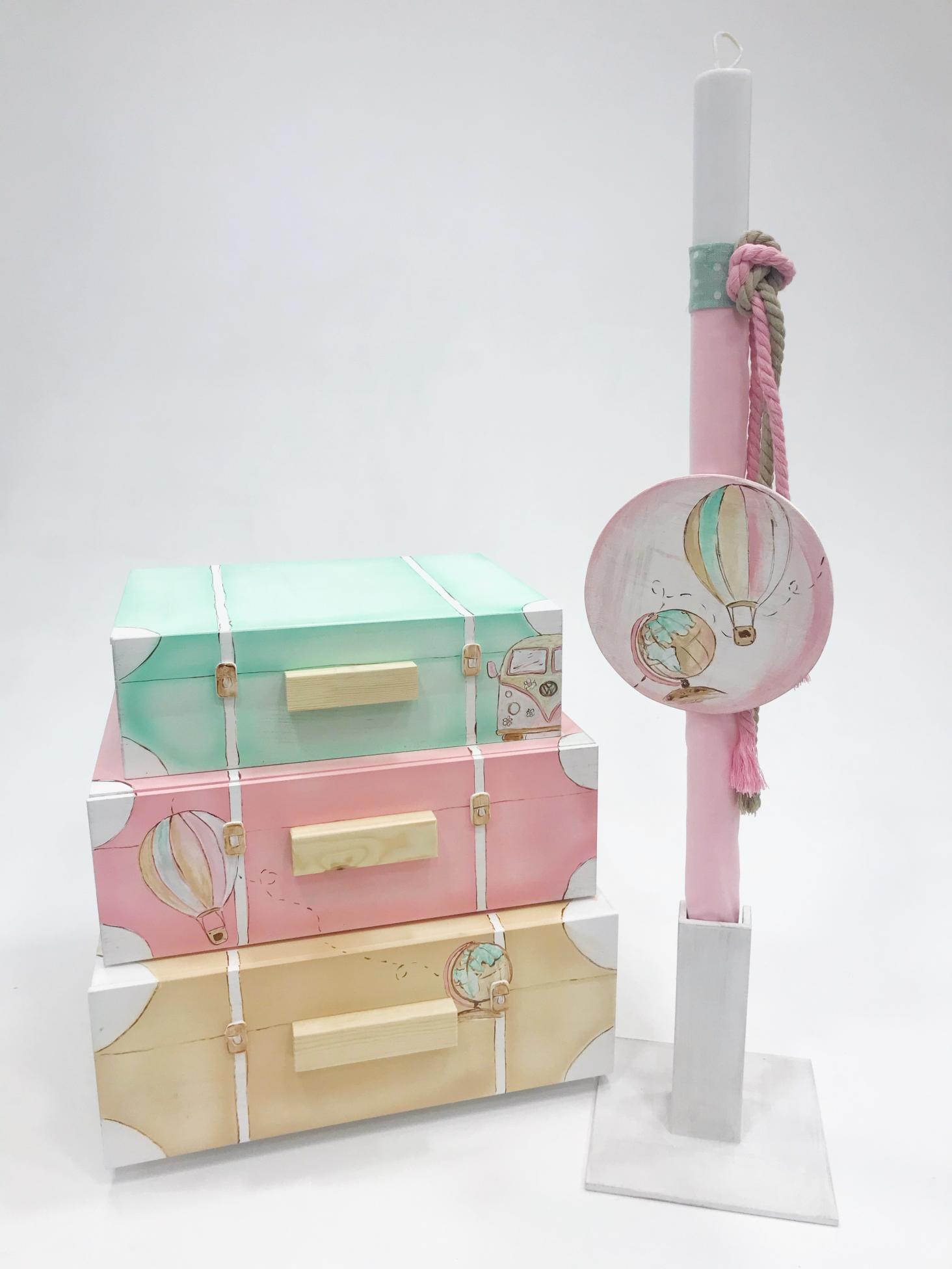 Η τιμή που εμφανίζεται αφορά το βαπτιστικό κουτί της φωτογραφίας με την κλασσική λαμπάδα και το λαδοσέτ του!