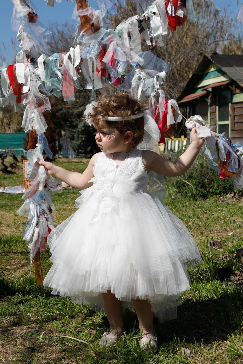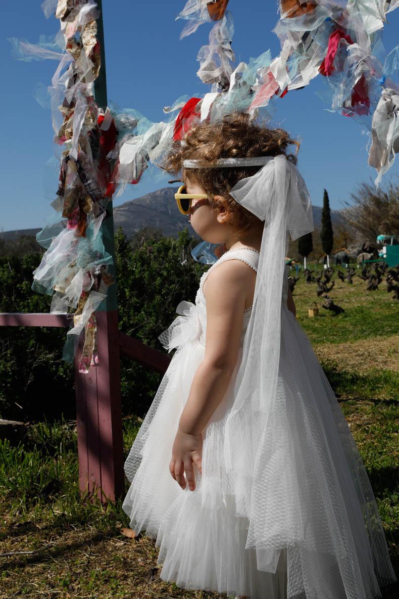 Η Vanessa είναι ένα girly white ρομαντικό φόρεμα βάπτισης με διαφάνεια και petit βολάν πουά στα μανίκια.