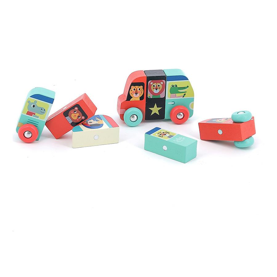 4 ξύλινα μαγνητικά οχήματα προς ανασυναρμολόγηση (12 κομμάτια συνολικά).