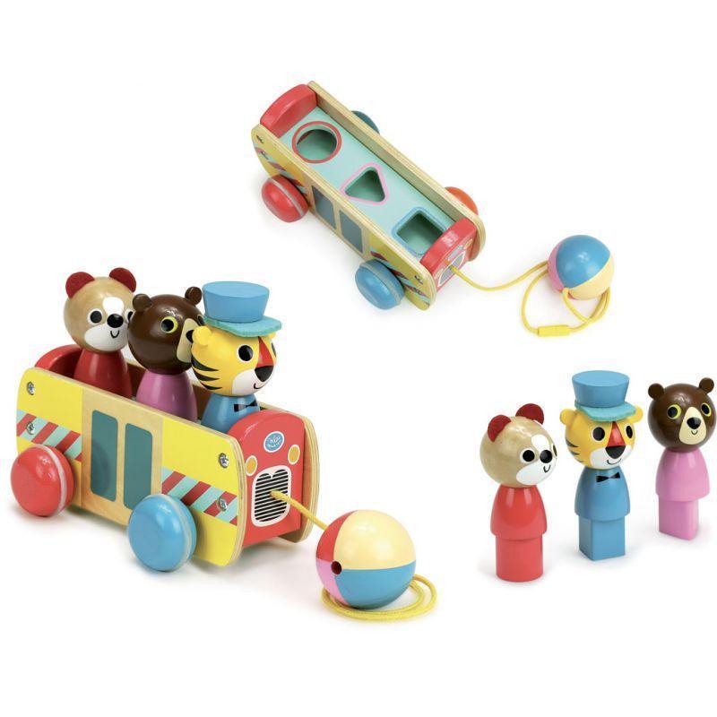 Συρόμενο ξύλινο λεωφορείο με ζωάκια από την Vilac.