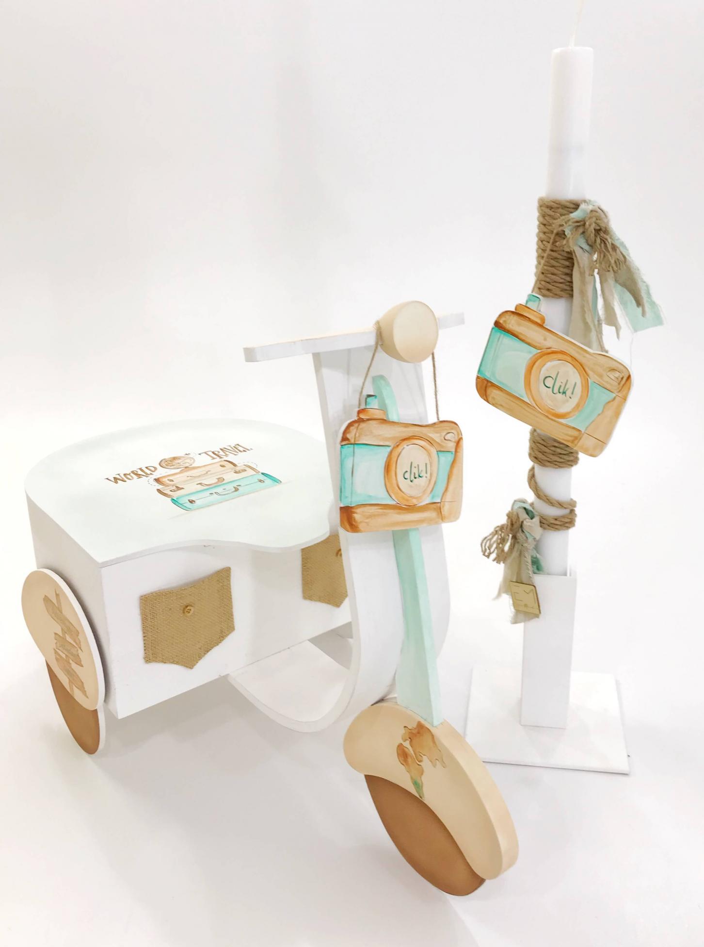 Η τιμή που εμφανίζεται αφορά το βαπτιστικό κουτί της φωτογραφίας με την κλασσική λαμπάδα και το λαδοσέτ του!