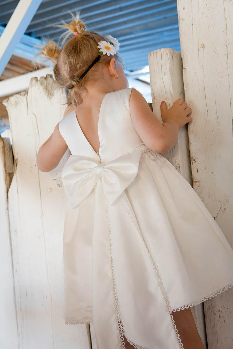 Η Zenia είναι ένα έκρου αμανικο σατέν φόρεμα βαπτισης με ανοικτη πλατη. Η petite τρεσσα που στολιζει το τελειψμα της φουστας και την ζωνη δινει μια elegant αισθηση στο ρουχο. Περιλαμβάνει στεκα για το κεφαλι.
